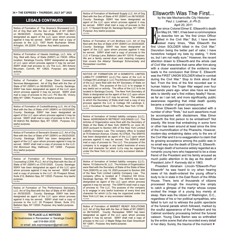 Weekly Paid Subscription Newspaper in Southern Saratoga County